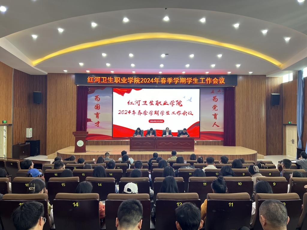2月29日下午,在图书馆报告厅召开了2024年春季学期第一次学生工作会议。学校党委委员、副院长朱有才、学生工作部、学生科、保卫科负责人和各二级学院(部)分管领导、全体辅导员、班主任参加会议。