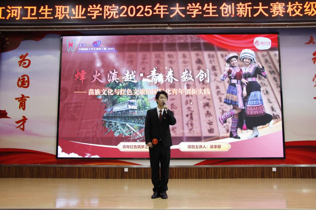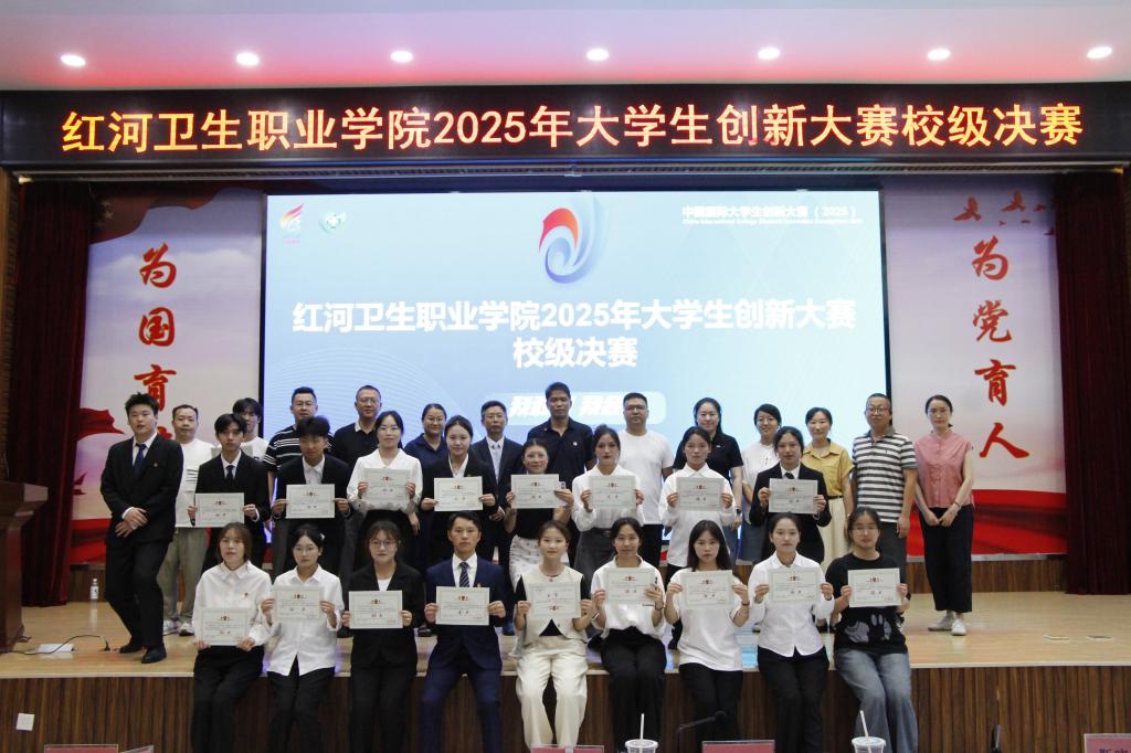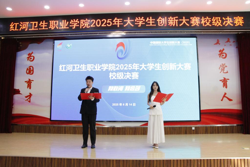 为传承弘扬红色基因,推进创新创业教育改革,2025年6月14日,红河卫生职业学院2025年大学生创新大赛校级决赛暨颁奖仪式在博闻报告厅举行。