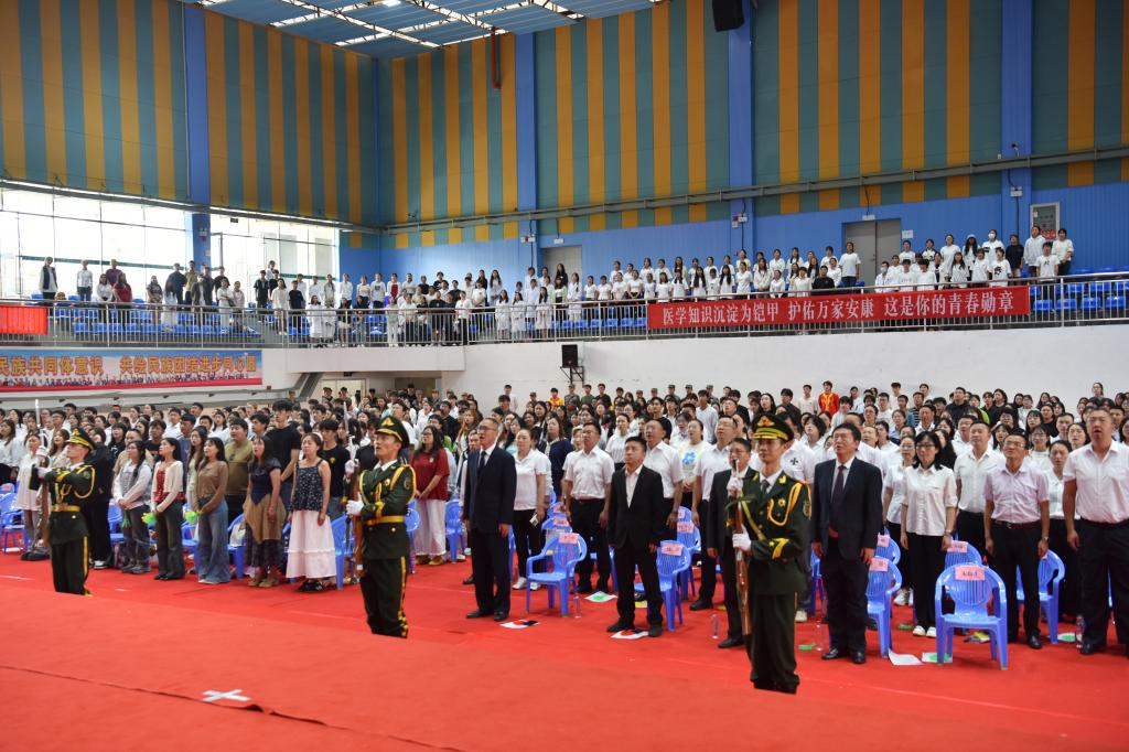 最令人动容的,是基层就业毕业生代表的报告,他们选择扎根,乡镇卫生院、社区卫生服务中心,用脚步丈量祖国大地,用听诊器倾听百姓心声,用所学守护基层健康,铿锵誓言回响,彰显着新时代医学生的责任担当。