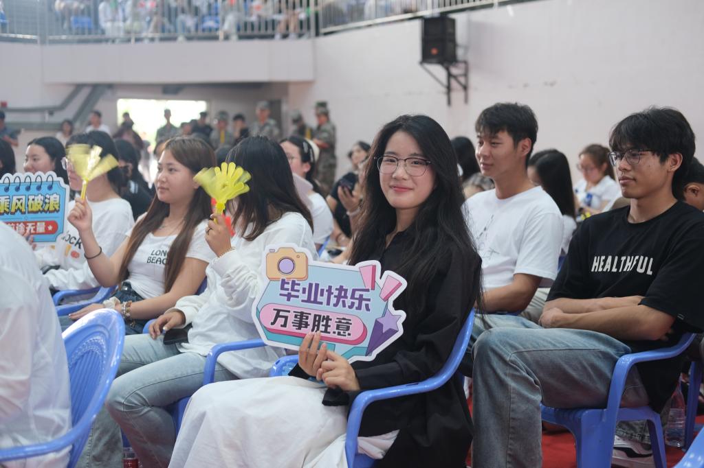 毕业歌会上,《我管你》的动感旋律点燃全场,《红卫红卫》的质朴歌词,道尽学子对母校的深切眷恋,引得不少学子眼含热泪轻声跟唱。师生并肩合唱《海阔天空》,那高亢歌声中,既有“不羁放纵爱自由”的豪情,亦饱含“母校是永远港湾”的叮咛。