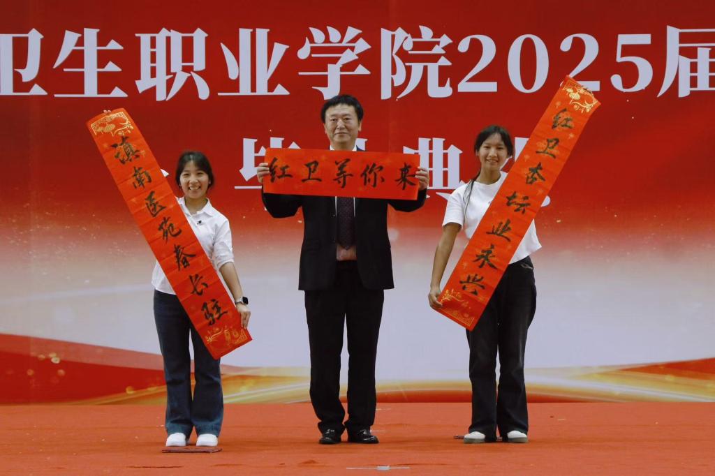 当激昂的国歌声响起,毕业典礼正式拉开帷幕。党委书记王必成的致辞如春风化雨,带领毕业生们,回顾了与红卫共同奋进的时光,他以“三心”寄语毕业生:以匠心守初心,让生命更有温度;以仁心暖人心,让岁月更有厚度;以恒心赢信心,让征途更有广度;愿这三盏心灯永远照亮你们的从医之路。