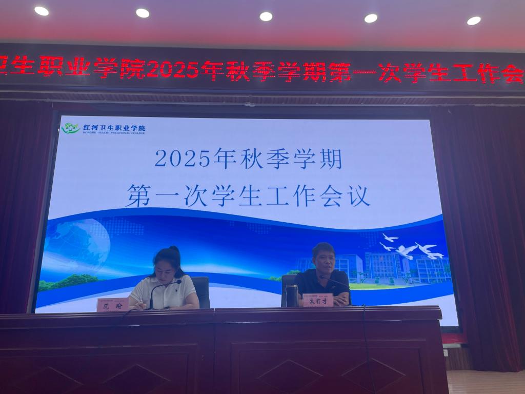 为扎实推进新学期各项学生工作有序开展,学生工作部于2025年8月28日在博闻楼报告厅召开2025年秋季学期第一次学生工作会议,党委委员、副院长朱有才出席会议,学生工作部负责人,各二级学院(部)分管学生工作的领导和全体辅导员、班主任参会。