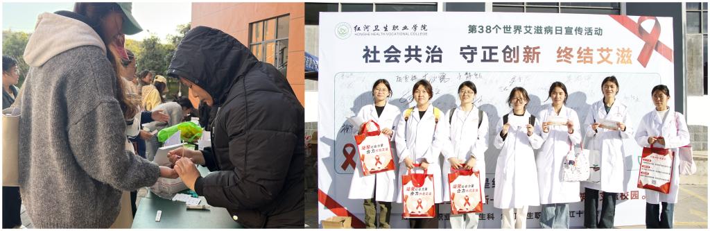 在第38个“世界艾滋病日”来临之际,为积极响应国家艾滋病防治号召,深入推进校园健康教育,我校于11月启动“防艾宣传月”系列活动。活动以“携手同心,为‘艾’发声,共担健康责任”为主题,通过创意画作、专题讲座、现场互动、自愿检测等多元形式,营造了全员参与、共筑防艾防线的校园氛围。