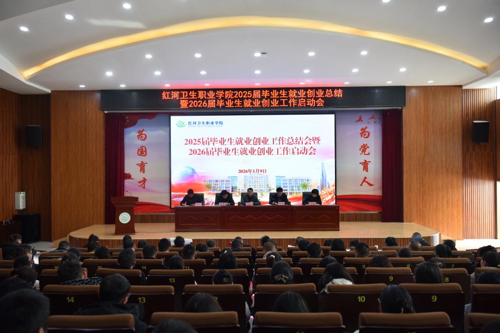 新年伊始,万象更新。为系统总结过去工作成效,做好2026届毕业生就业创业工作,2026年1月9日,我校在博闻报告厅召开2025届毕业生就业创业工作总结暨2026届毕业生就业创业工作启动会。校领导、中层干部及2025届、2026届毕业班辅导员、班主任参加会议。会议由党委委员、副院长朱有才主持。