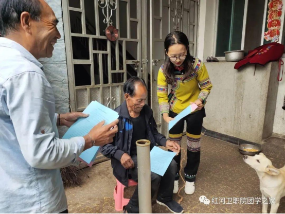 宣讲结束后,12名师生进入沙子田村小组开展入户调研,进行了普法、健康文明生活方式、健康知识的宣传教育,帮助农户收家治家,宣传教育农户树立健康文明生活方式意识,靠自己提升居住环境和美化乡村环境。