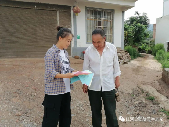 在组织部副部长周颖航老师、学生处普海丽老师的带领下,“红卫小帮手”脱贫攻坚志愿服务2队15名学生队员在大马底村小组开展入户调研,进行了普法、健康文明生活方式、健康知识的宣传教育,帮助农户收家治家,宣传教育农户树立健康文明生活方式意识,靠自己提升居住环境和美化乡村环境。