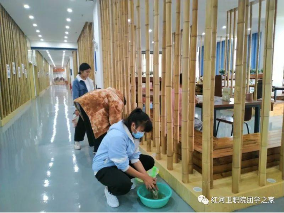 每天早晚两班配合学院相关部门督查并清扫相关区域。