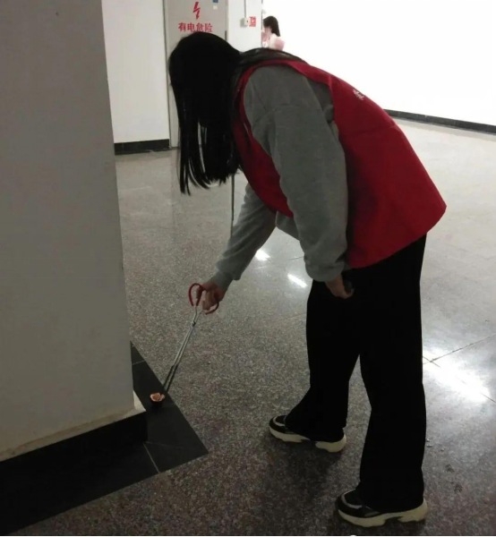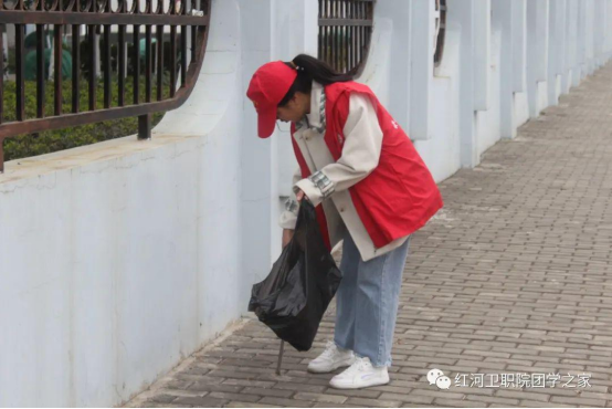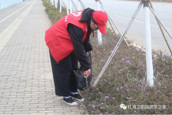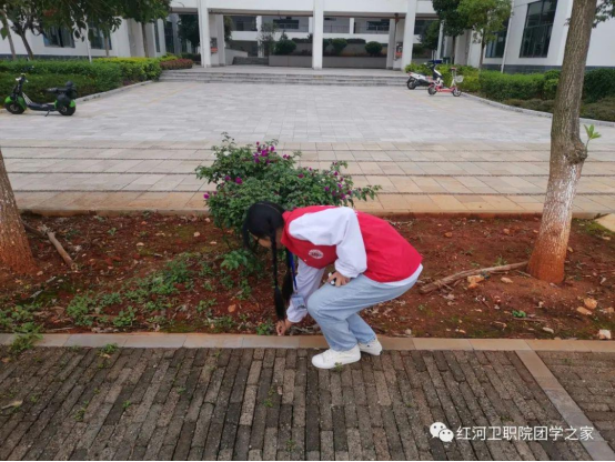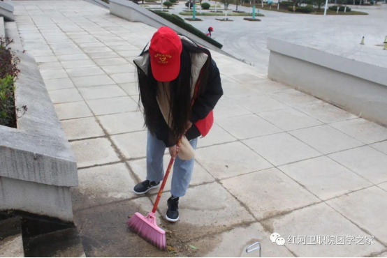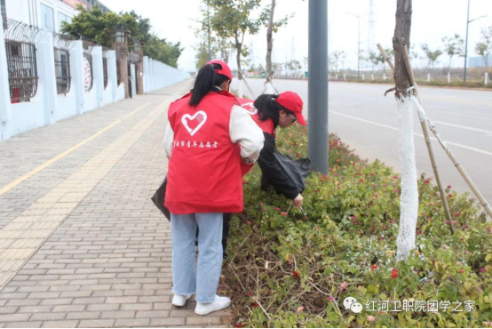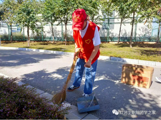 每天中午做好全校相关区域的卫生突击工作,周末做好校外杏林路的监督与保洁。