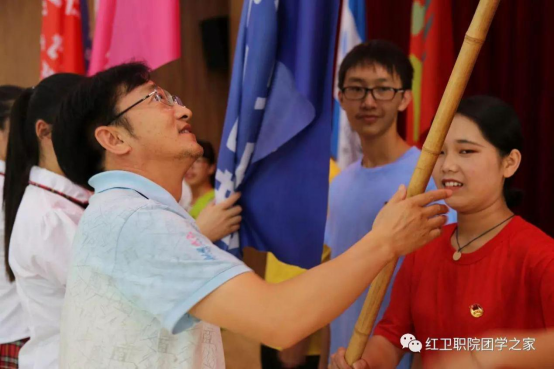 党委副书记、纪委书记饶培辉宣布2017年红河卫生职业学院暑期“三下乡”社会实践活动启动,并向各代表队授旗。