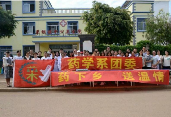 为深入贯彻落实党的十九大精神,学习宣传习近平总书记系列重要讲话精神,响应习近平总书记对青年“勤学、修德、明辨、笃实”的要求,进一步发挥学院药学系学科优势,锻炼我系学生创新实践能力;为加大对医疗服务的宣传力度,让老百姓更了解药品知识,提高用药常识,提高同学们的实践能力,让同学们从实践中收获经验,在实践中学会与人交流,2018年7月12日,在蒙自市草坝镇卫生院的大力支持与帮助下,在学院团委的关心下,药学系团委组建了一支由43名师生组成的志愿者团队,到雨过铺镇开展了“药下乡,送温情”为主题的“三下乡”社会实践活动。