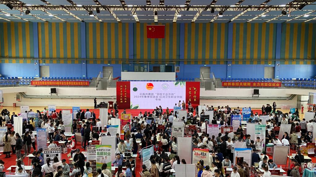 为深入贯彻落实习近平总书记关于青年工作的重要思想,全面落实省委关于高校毕业生就业工作的决策部署和《云南省支持青年创业兴乡三年行动(2024-2026年)》,根据共青团云南省委关于印发《2024年“团团陪伴·‘就’有‘位’来”促进大中专学生就业行动实施方案》通知的部署要求,共青团红河卫生职业学院委员会联合学生科于2024年3月29日在红河卫生职业学院体育馆内举办云南共青团“百校千企万岗”2024年春季双选会·红河卫生职业学院专场。