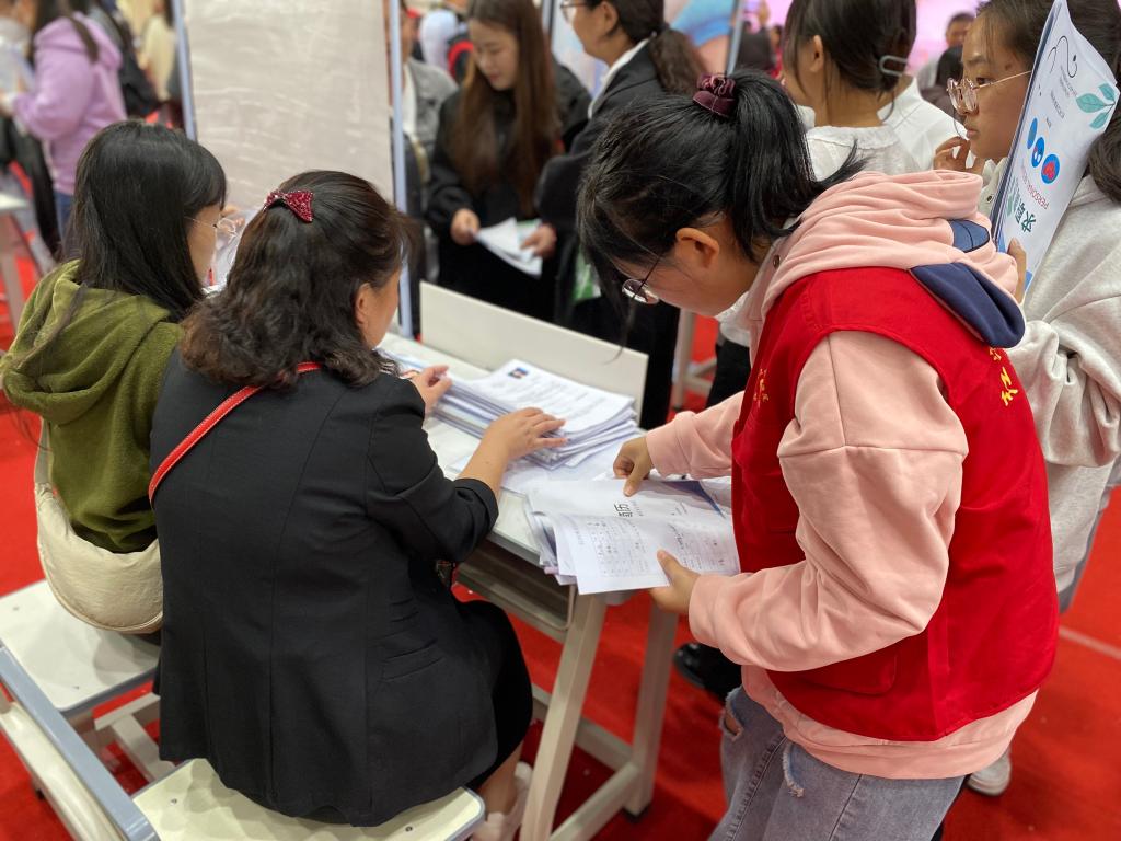 本次招聘会立足精细化服务,现场设置岗位展示区、人才服务转区、政策咨询区、医疗保障区等,州人社局、州卫健委、市人社局及学生就业中心工作人员为求职学生提供简历诊断、求职咨询、政策咨询等服务,为用人单位提供校企对接,200余名志愿者在现场提供保障及服务。