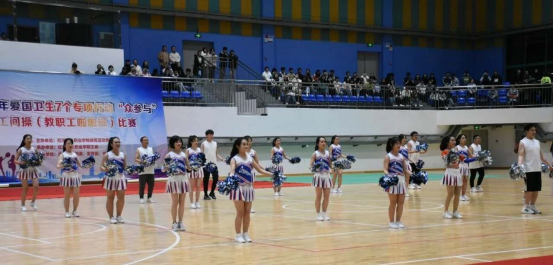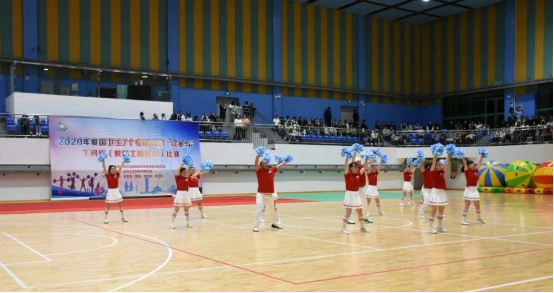 为了深入贯彻落实习近平总书记关于新时代爱国卫生运动的重要指示精神,切实落实省委、省政府关于推进爱国卫生专项行动决策部署,结合《公共体育场所爱国卫生专项行动工作方案》和《云南省科学健身“众参与”工作方案》等文件精神。2020年12月16日19:30—21: 00,由红河卫生职业学院体育运动委员会主办,红河卫生职业学院工会委员会承办的校园啦啦操大赛,伴随着主持人刘超老师铿锵有力的声音,比赛拉开序幕。
