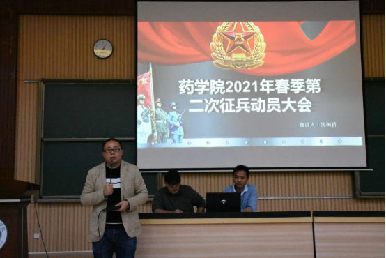 大学生应征入伍,是以实际行动履行国防义务,支持国防建设的重要举措,是拓宽毕业生就业渠道的有效途径。因而大学生走进军营,为祖国贡献自己的力量,是每一个热血青年的义务和担当。为此,药学院于2020年12月27日晚上19:20在教学楼阶梯教室举行了2021年春季第二次征兵动员大会。此次会议由沈树桥老师主讲,参会人员有药学院副主任阳敬老师、总辅导员高旭锐老师、药学院各班班主任及全体男生。