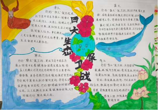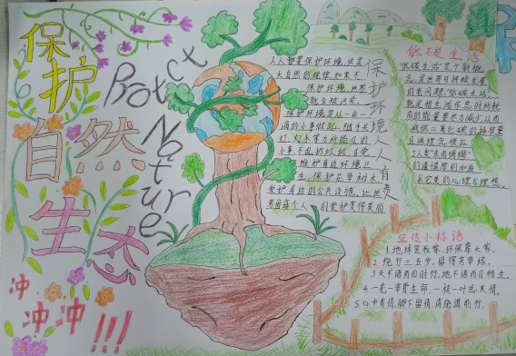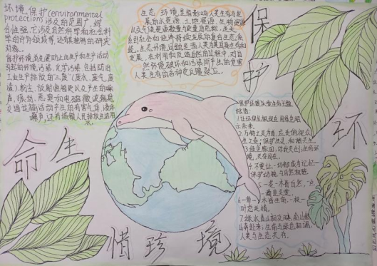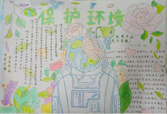 作品简介:同一个地球,绿色的家园,绘画以地球为中心,各色花草环绕地球左右,人与自然和谐共生,问渠那得清如许,为有源头活水来,环境的保护功在当代,利在千秋,以此手抄报来呼吁大家一起保护环境,爱护自然,秉承绿水青山就是金山银山的新发展理念,共同创造天蓝,地绿,水清的美丽家园。