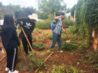 采摘完菊花,同学们积极配合负责人的指挥,领取工具为百草园进行中耕除草、追肥等田间管理活动,为园内植物的茁壮生长提供良好的环境条件。
