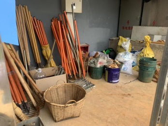 劳动结束,同学们把军训成果运用到实际中,工具摆放整齐划一。原来杂乱无章的工具存储处,被同学们收拾得井然有序,各种物资,分类摆放,空间利用更加合理。