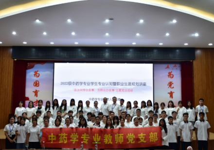 中药学专业教师党支部于9月26日开展2022级中药学专业学生专业认知暨职业生涯规划讲座,由药学院院长、中药学专业负责人阳敬同志,从中药学专业的成立、办学背景、成长与发展、人才培养模式及职业生涯规划等多个角度展开细致生动的讲解,让同学们对专业认知和职业生涯规划有了清晰的认识。