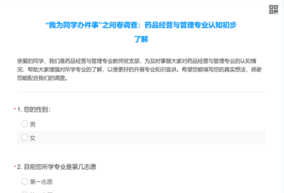 药品经营与管理专业教师党支部于9月28日向2022级药品经营与管理专业新生发布问卷,初步了解他们对所学专业的认知、新生想要了解的专业方面的信息及其他方面的困难、问题,为下月开展的“我为同学办件事”系列活动作准备。