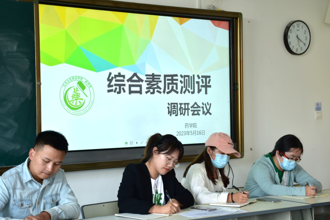 为深入贯彻落实全国高校思想政治工作会议、党的群团工作会议精神,落实共青团中央、教育部等系列文件要求,切实发挥好共青团服务高校立德树人根本任务和人才培养中心工作的重要作用,完善我校学生发展服务体系,促进学生素质素养提升,推动第二课堂课程化、系统化、信息化,促进第一课堂和第二课堂深度融合。结合学院工作实际,药学院于5月16日在综合实训中心201教室举行了综合素质评价调研活动。参加此次会议的有药学院行政领导、药学院辅导员以及在校班各班学习委员和学生代表。会议由药学院副院长庄晨曦老师主持。