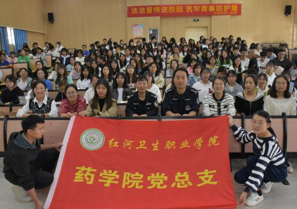 2023年是全面贯彻落实党的二十大精神的开局之年,是“八五”普法规划实施的中期之年,为推动校园安全教育深入开展,加强师生法治教育,进一步营造学法、懂法、守法的良好校园法治氛围。2023年10月11日,红河卫生职业学院药学院党总支联合辖区派出所开展“法制宣传进校园”普法宣讲活动,特邀嘉宾沈华警官和戴蒙警官为全院师生代表带来了一场典型案例与法律法规相结合的生动宣讲,活动由药学院副院长李丽娟主持。