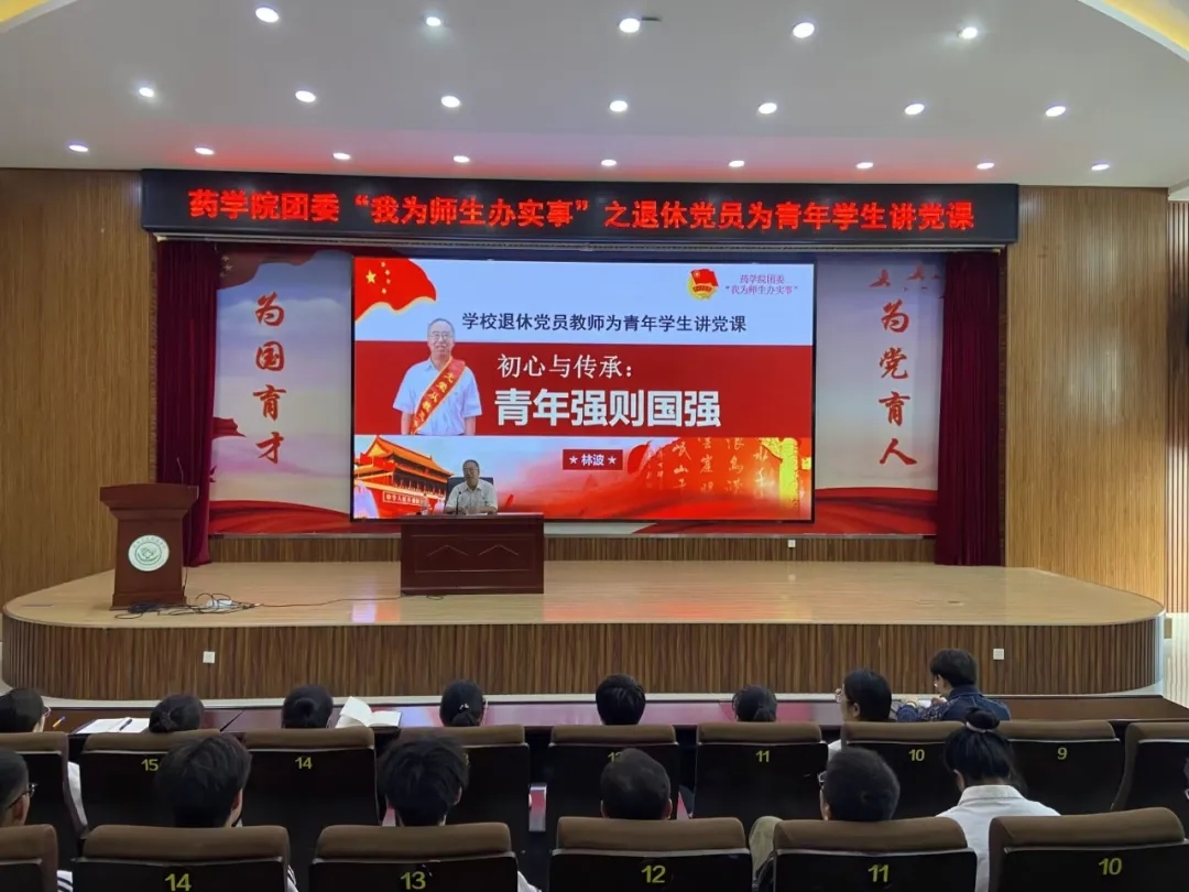 2023年11月1日下午,药学院团委组织学院学生代表听党课。党课的主要内容围绕"初心与传承:青年强,则国强"开展。本次党课由退休党员教师林波老师主讲。