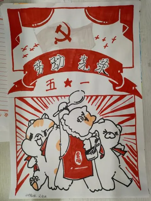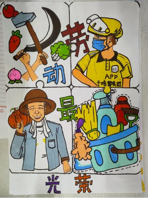 精美的海报体现出了同学们对劳动光荣这一涵义的深刻认知,望同学们能将劳动精神实践于生活中,促使德智体美劳的全面发展,提升实力,成为更好的自己。