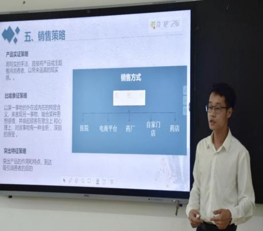 青春领航创业,智慧塑造未来。为贯彻落实党的二十大精神,深入贯彻落实“三位一体”统筹推进教育、科技、人才工作,把创新教育贯穿教育活动全过程,落实立德树人根本任务,传承和弘扬红色基因,聚焦“五育”融合创新创业教育实践,激发学生创新创造热情,培养创新创业能力,提升学生综合素质。我院于6月26日在教学楼南206举办了药学院第九届“互联网+”大学生创新创业大赛复赛。评委老师有药学院院长阳敬,药品经营与管理教研室主任杨瑶,教师皮渤淼,辅导员高旭锐、保剑,本次比赛由吕鸿老师主持。