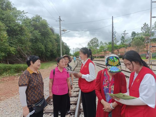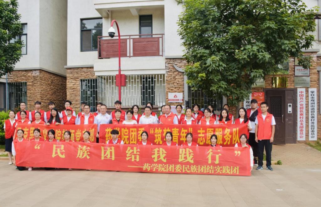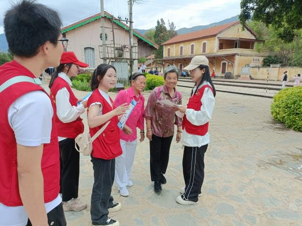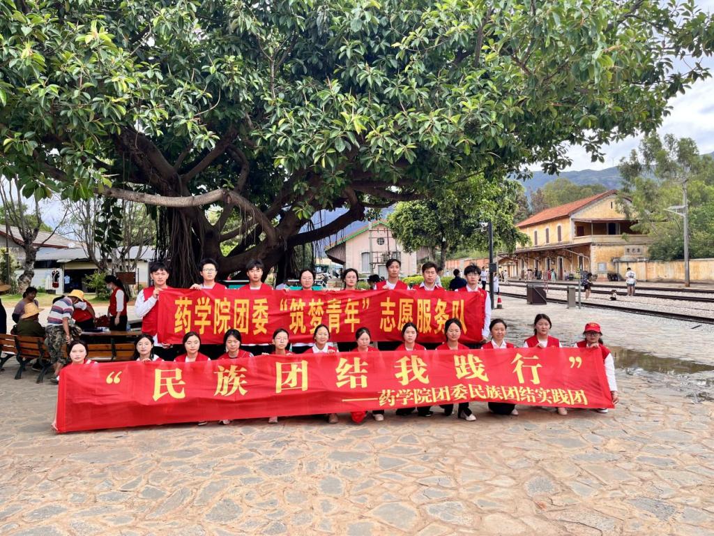 为深入学习二十大,践行习近平总书记“像石榴籽那样紧紧抱在一起”的民族团结意识,助力青年深入了解民族团结现状,不断铸牢中华民族共同体意识。2023年7月3日,药学院团委联合药学院党总支、马克思主义学院,前往蒙自市碧色寨开展“民族团结我践行”、“学习二十大永远跟党走 奋进新征程”主题的暑期“三下乡”社会实践活动。