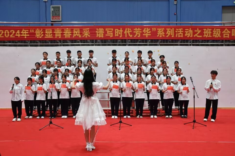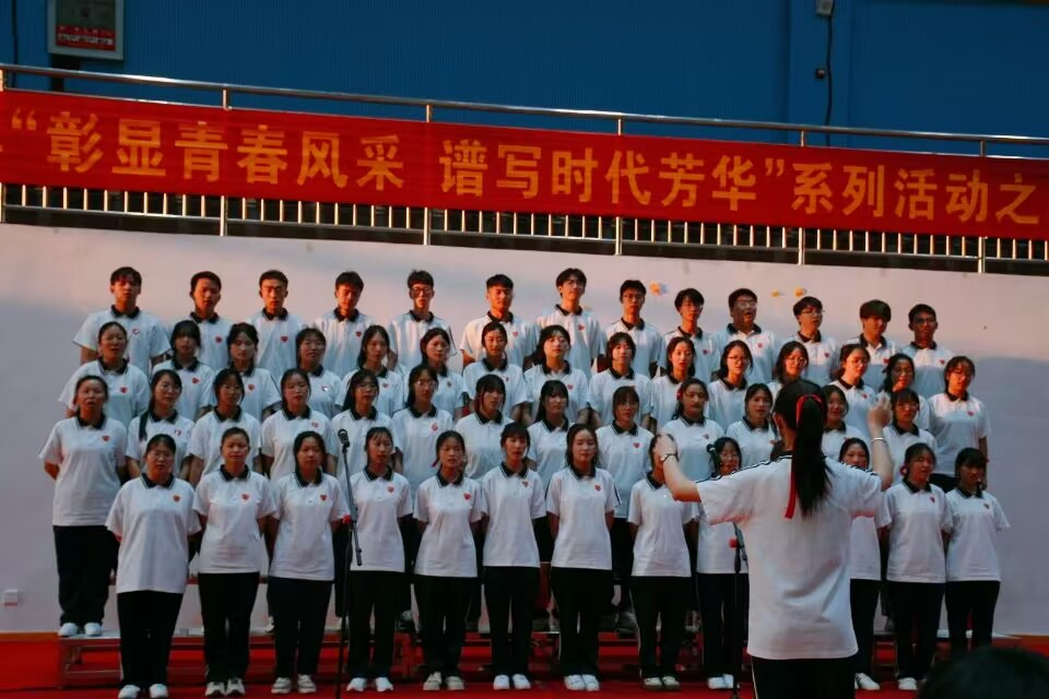 在舞台上,各班同学都放声歌唱,每一个音符都跃动着生命的活力,每一段旋律都产生着心灵的共鸣。同学们用美妙的音符承载梦想,用最响亮的歌声,最真挚的情感,诠释合唱的魅力,展现团队的力量!