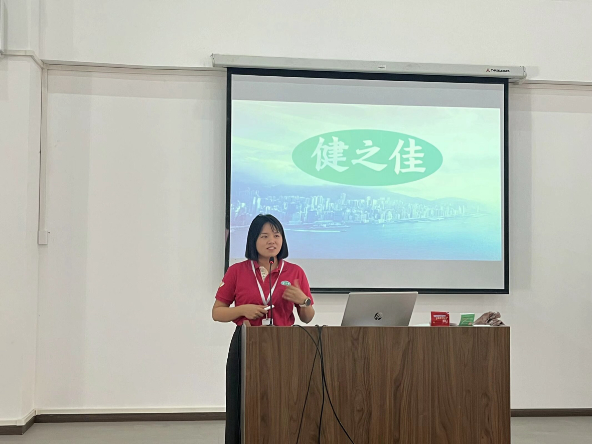 接下来,药学院优秀毕业生代表严之玲为同学们分享她在健之佳工作的经历与感受,用她在健之佳工作期间的经历为同学们展现了健之佳人团队协作、努力奋斗的精神,通过她的分享让同学们更进一步的认识到健之佳的企业文化。