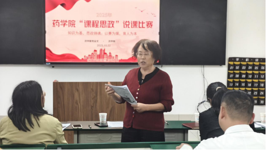 为落实立德树人根本任务,药学院于10月20日举办以“知识为基,思政铸魂”为主题的“课程思政”说课比赛。各教研室5名教师代表同台竞技,以匠心设计诠释学科育人智慧,以生动课堂践行思政教育使命。