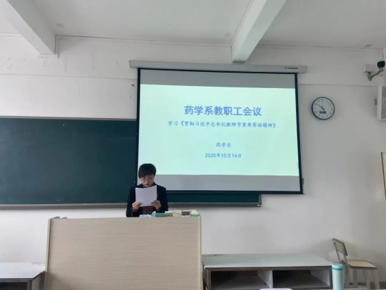 2020年10月14日下午4点30分,药学系在教学楼南204召开加强师德师风建设专题会议,会议由药学系副主任阳敬主持。