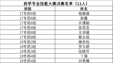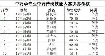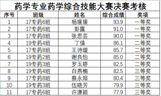 药学、中药学两个专业的评委秉着公平、公正、公开的原则,对21名选手进行了决赛。成绩见下表: