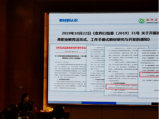 本次研修班专门邀请了国家药品监督管理局高级研修学院教材部殷晓梅,传达宣贯国家政策、职教理念,介绍试点4本药学专业教材的初衷和设想,最新的进展情况,以及对试点教材进一步推广的意见和建议;华东师范大学职业教育与成人教育研究所副研究员李政博士做《职业教育新形态教材开发:基础理论与技术方案》专题讲座,讲解能力本位活页教材开发的思路和方法;广东食品药品职业学院制药工程学院院长丁立教授(全国首本《药物制剂技术》活页式工作手册式教材主编)对《药物制剂技术》活页式教材开发思路、工作任务分析、能力清单设计,组织、特色和得失、样章解析以及该教材如何应用于教学实践进行了详细介绍、解读和示范。我院陈建雯老师作为编委之一参加了教材编写研讨交流,她介绍了参加《药物制剂技术》活页式教材编写的荣幸以及整个编写过程的艰难,并从活页式教材的认识、编写体会、经验教训和困惑及未来完善的方向等四个方面做了汇报交流。
