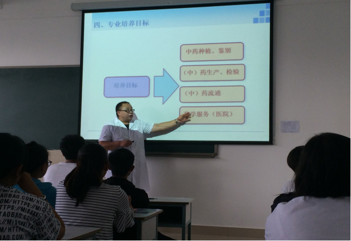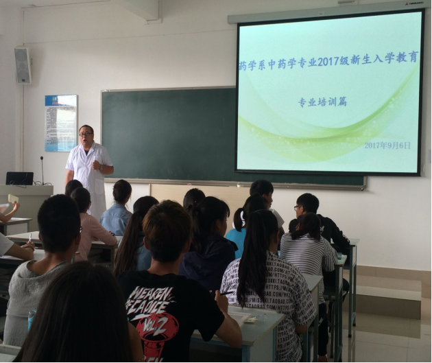 2017年9月6日下午,药学系中药学专业负责人阳敬老师,在17中药1班教室,对2017级中药学专业所有新生进行了专业培训。阳老师从专业的设立背景、专业定位、专业培养目标、专业课程和将来的就业面向等几个方面对中药学这一新专业作了系统全面的介绍。并对中药学专业学子提出了五点的期望,期望他们“以正确的认识对待所选专业;以积极的态度对待课堂学习;以乐观的态度对待校园生活;以宽容的心态对待同学;以礼貌的太对对待师长。”