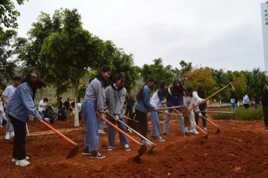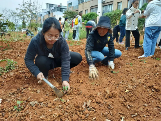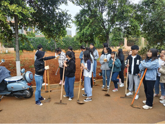 同学们挥舞着锄头,在“百草园”这个户外的“教室”里用劳动书写着勤劳和奋进。