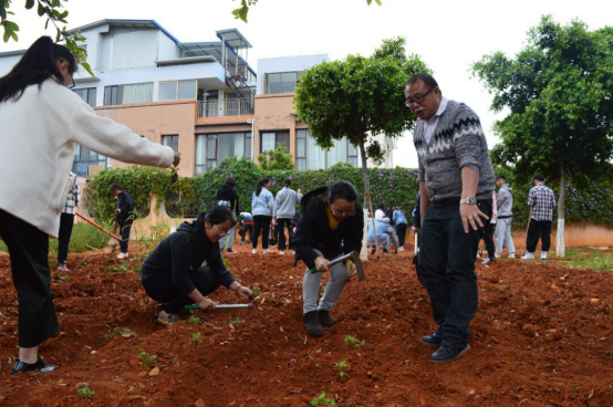 平日里在教室中严肃认真上课的老师们,此时纷纷转变为土地上光荣的劳动者。