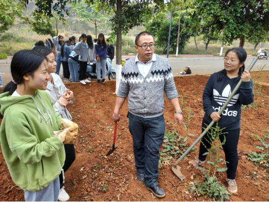 李丽娟老师对参加活动的同学们进行分工并指导药用植物栽培技术。