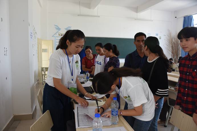 在新生报到期间,各班班主任认真、耐心的为学生家长解答疑难,药学系团学联合会成员也认真辅助老师进行新生报到工作,在老师和学生的认真配合下, 迎新工作更高效有序地进行着。