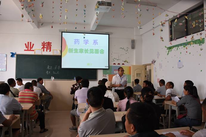 会上,由药学系阳敬老师主持会议,阳敬老师向各位新生家长详细介绍了药学专业和就业趋势,药学的培养模式和学校的管理方式。还对在校生的安全、考试、留级、行为规范、纪律处分、学生资助政策等方面作了说明,此次家长见面会的目的是希望家长积极主动与班主任及学院教师联系,与老师合力正确引导学生成长成才。