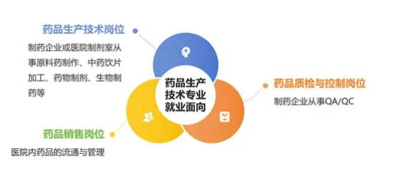 毕业后能够面向医药制造行业从事化学原料药制造、中药制药、中药饮片加工、药物制剂、生物制药等;亦可在药品医药销售行业从事药品购销等工作。可通过专升本考试进入本科高校继续深造,获取本科文凭。也可应征入伍,投身军营报效祖国。