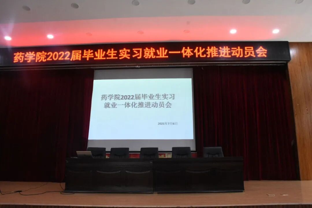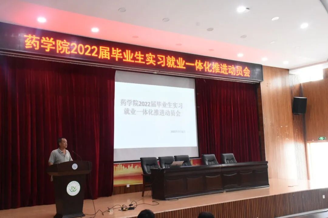 随着改革开放和市场经济的运行,现在高职院校的发展已经达到了一定的规模,而高职院校学生的就业也成为了热点问题。药学院为了提高同学们的就业意识,积极的推进实习就业一体化模式,不断的拓展同学们的实习渠道,目前的实习点已经由最初的医院拓展到了现在的一心堂、健之佳、昆明中药厂、云南白药大药房等十多家企业。为了使去这些企业参加顶岗实习的同学加深对理论知识和专业知识的认识,提高和强化同学们的竞争意识、职业意识,转变就业观念,增强就业能力,为实习结束后顺利就业打下坚实的基础,药学院在5月30日第一次实习生动员大会的基础上,针对即将去企业参与顶岗实习的全体实习生,于7月6日下午4:30在图书馆报告厅召开了“药学院2022届毕业生实习就业一体化推进动员会”。本次的会议由药学院辅导员张大庆主持,到场的领导有学院副院长左强、药学院副院长庄晨曦,辅导员欧阳秋雨及保剑老师。