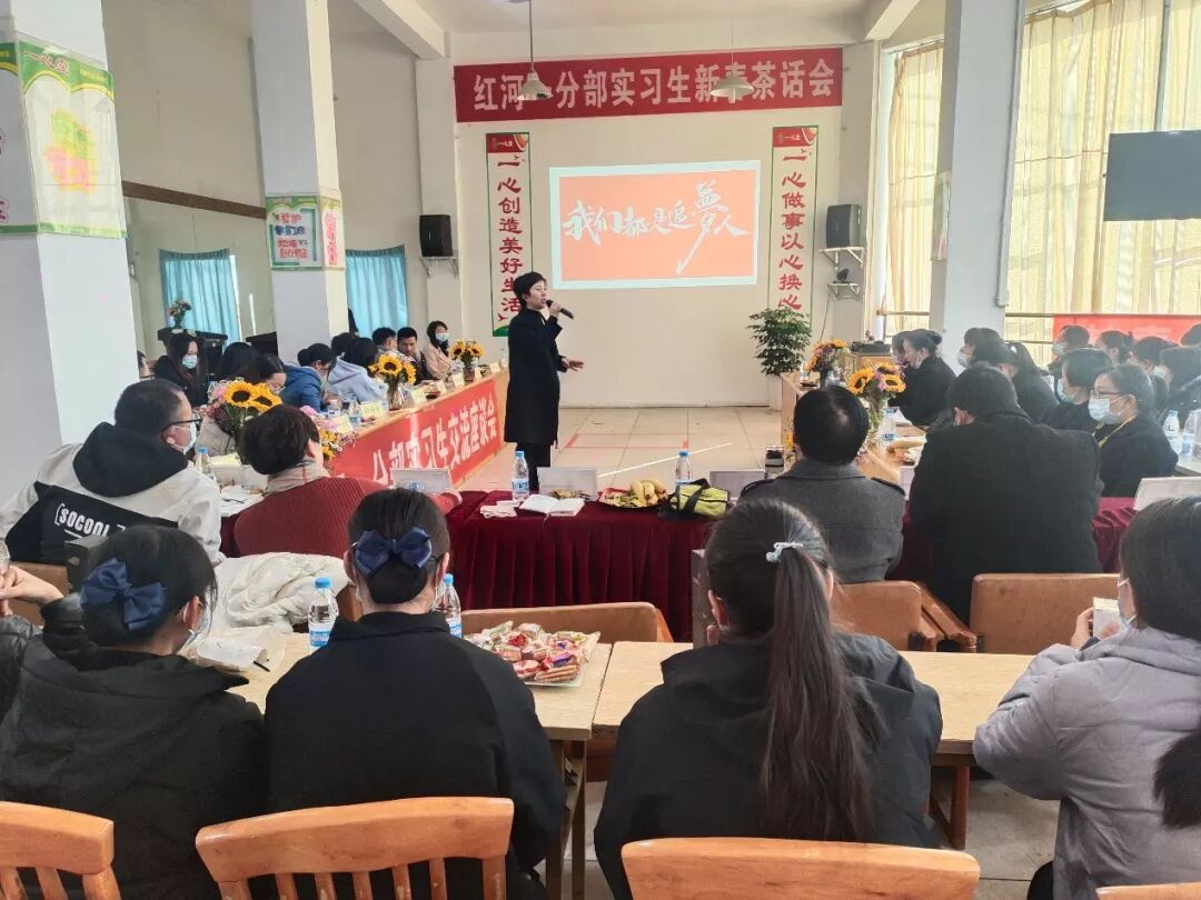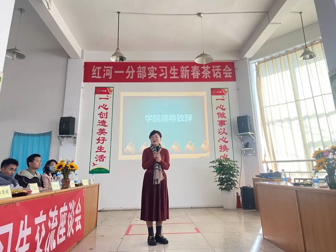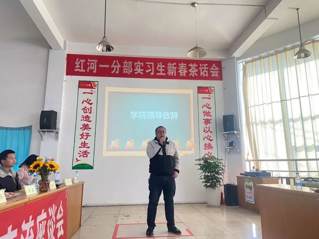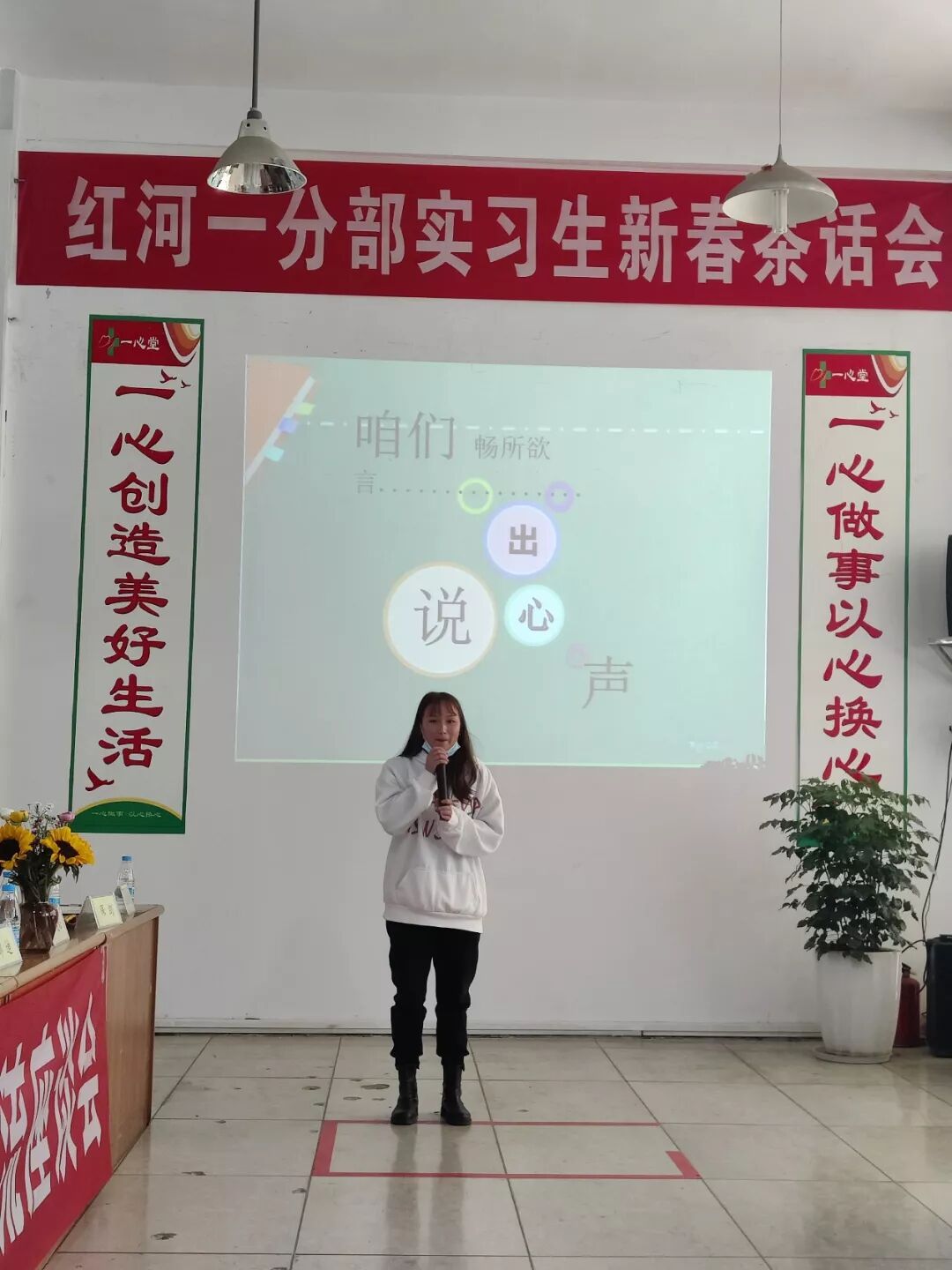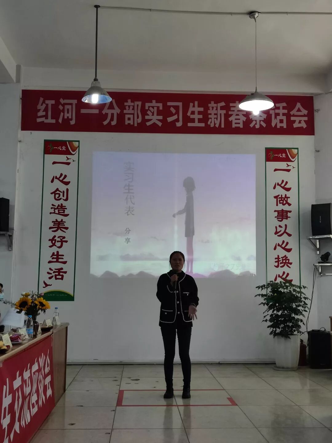 座谈会在一心堂会堂举行,由一心堂人事管理员杨敏主持,一心堂红河一分部总经理段琳、运营管理部经理普源、一区区域经理皮艳芝、二区区域经理杨萍、三区区域经理熊欣红及三个区域门店店长代表参加了此次会议。会议首先由饶副书记讲话,他肯定了同学们在实习期间的表现,希望同学们再接再厉,在后面的实习期内,依然尊敬带教老师,虚心向带教老师学习,实践出真知;他也希望同学们爱岗敬业,高质量工作,他说大家穿上工作服代表的不仅仅是自己,还代表企业和学校,要为企业、为学校更为自己争光,尤其临近春节假期,作为在服务行业实习的同学们要服从企业安排,做好服务工作。饶副书记就目前就业形势的严峻性给同学们进行了分析,鼓励同学们实习就业一体化。最后,饶副书记在给同学们送上新春祝福的时候,不忘提醒同学们把安全牢记于心,同时严格做好疫情防控工作。