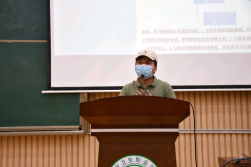 最后,副院长李丽娟老师总结:实习是把理论知识付诸于岗位实践,提升自己专业技能的必修环节之一,希望大家在实习期间发挥吃苦耐劳的精神,遵纪守法,认真完成学习期间的最后也最重要的一步。她还告诉大家,实习期,大家仍然是在校生的身份,一定要相信学校是大家坚强的后盾,遇到问题,可以向班主任或者辅导员老师及时沟通,也可以拨打实习鉴定电话:0873-3057527。