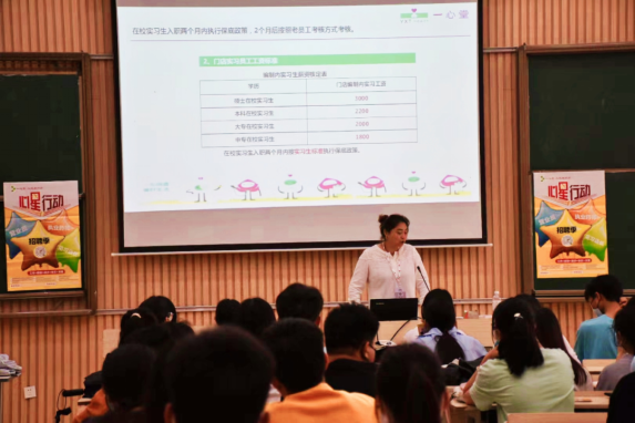 随后,张微给同学们介绍红河卫生职业学院就职一心堂的优秀毕业生。以此延伸出“我们需要怎样的你”的话题。并对同学们在岗位职责、任职要求,工作时间管理方面做出了要求。通过宣讲为我们讲述了大家最关心的问题–实习生的津贴。