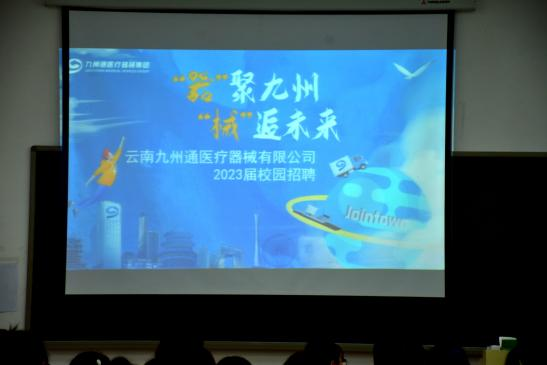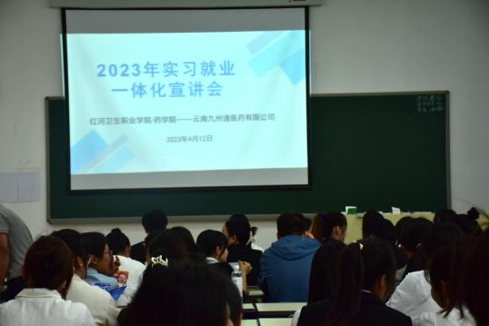 “剑”指未来,“职”点迷津,为增强学生的生涯规划与职业发展意识,引导学生树立正确的就业观、择业观,为促进高校文化对接和传承,引导学生进一步明确未来的人生规划,药学院于4月12日下午,联合云南九州通医药有限公司开展优秀毕业生分享暨实习就业一体化宣讲促就业活动。出席本次活动的有云南九州通医药有限公司产品经理黄佳威、招聘专员冯丹敏,药学院副院长,辅导员及2023,2024届毕业生,本次活动由药学院副院长李丽娟主持。
