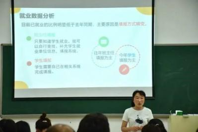 药学院副院长李丽娟通过饼状图明确未就业毕业生人数,剖析了学生就业困难的原因;并列举了帮扶工作中常见的4类学生问题,对帮扶要点及技巧进行了培训。