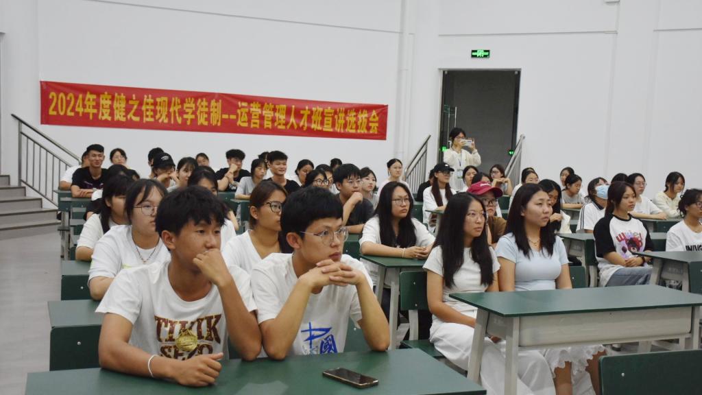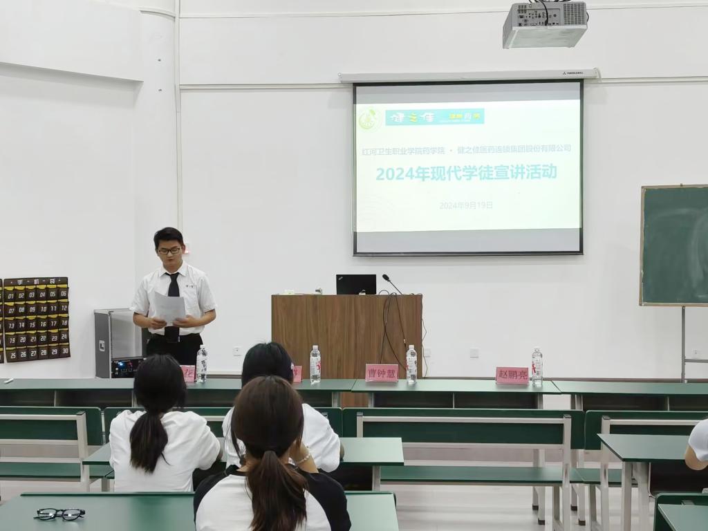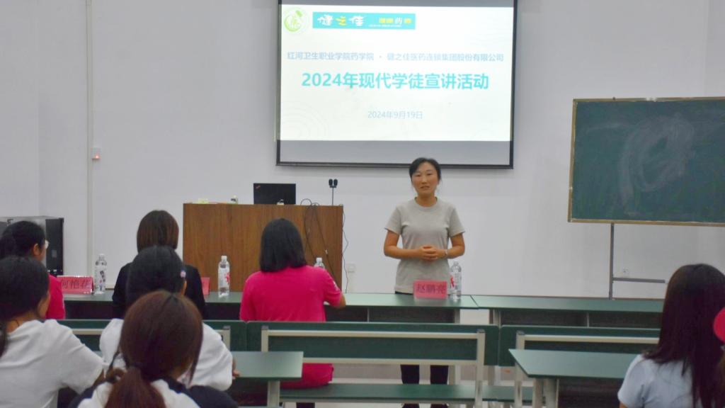 为深化产教融合,校企合作,促进企业参与职业教育人才培养全过程,着力培养学生的专业精神、职业精神和工匠精神,药学院于9月19日在大教室西1—1举行“2024年度健之佳现代学徒宣制——运营管理人才班宣讲选拔会”。参加此次活动的有健之佳全国人才开发经理经理张婷、红河分部人事部经理曹忠慧、红河分部人事主管何艳花、蒙自海怡佳园分店店长赵鹏亮,药学专业23级三年制及21级五年制意向选择学徒培养模式的同学。本次活动由药学院副院长李丽娟老师主持。