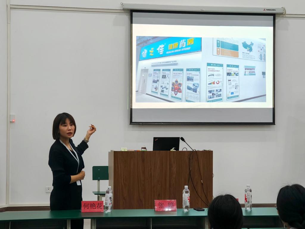 活动开始,李丽娟老师向同学们介绍了现代学徒制的培养模式和举办目的,让同学们更深层次的了解现代学徒制。随后,健之佳的张婷经理介绍了健之佳的企业规模、企业分布、企业荣誉、公司品牌与业态等,帮助同学们做出符合自身实际情况和发展需求的选择。